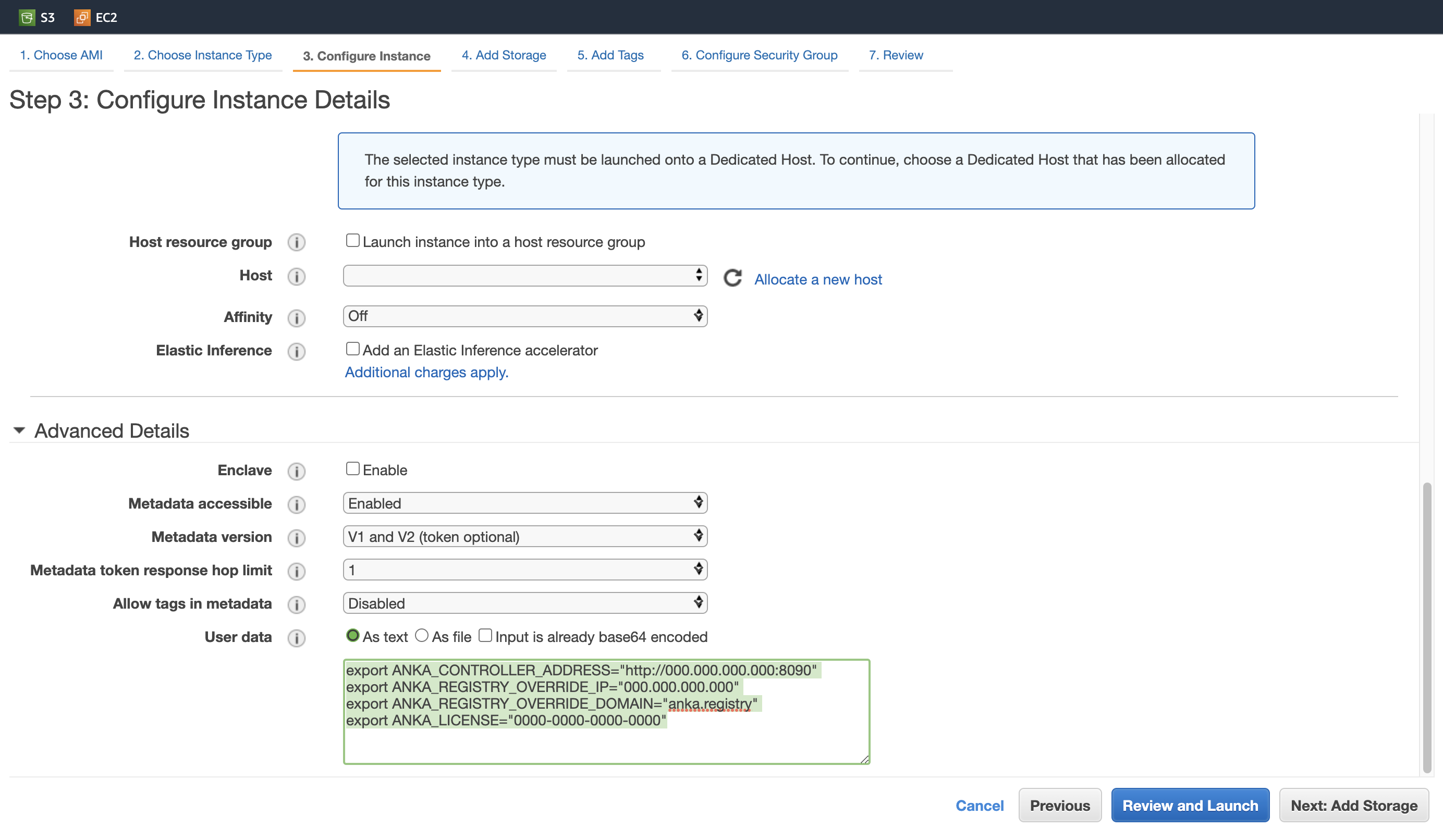 (Optional) Automatically join to the Anka Build Cloud Controller using User Data: